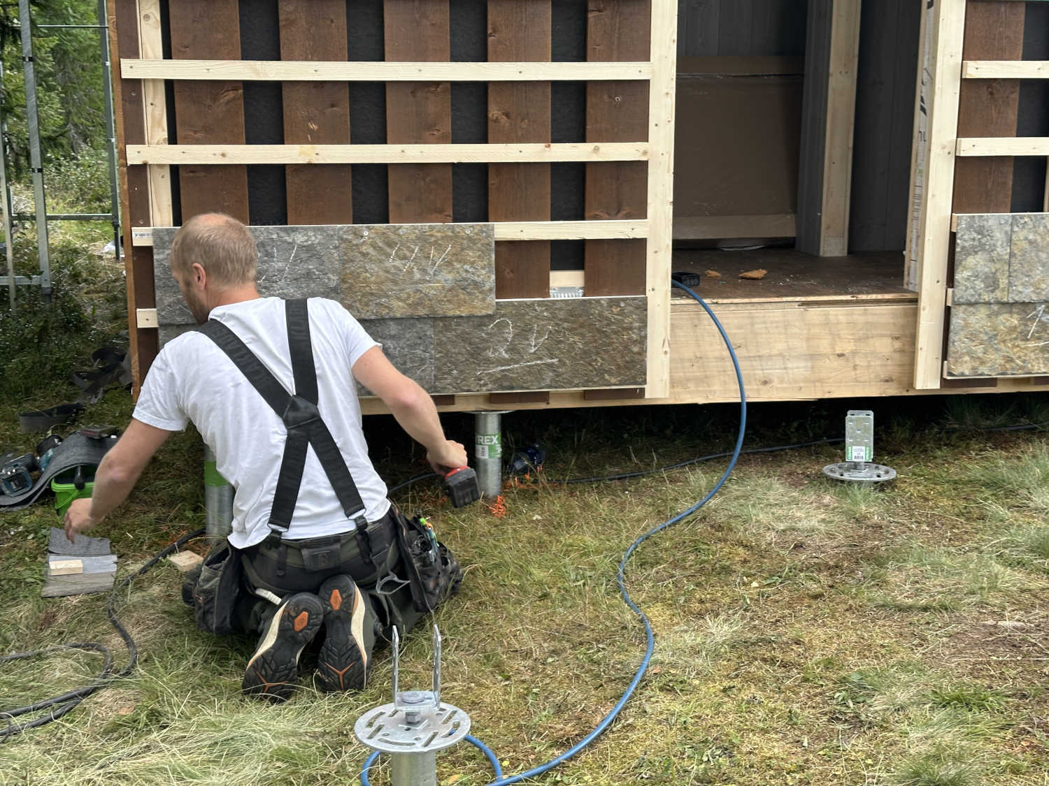 Detta är ett snickeriarbete som vem som helst kan göra själv – och för den som vill ha mer frihet kan fasadskiffern även levereras utan anpassning. Resultatet blev en modern, naturlig och exklusiv fasad som passar perfekt in i fjälllandskapet vid Almoseteren.